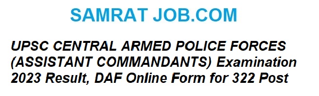 UPSC CENTRAL ARMED POLICE FORCES (ASSISTANT COMMANDANTS) Examination 2023 Result, DAF Online Form for 322 Post