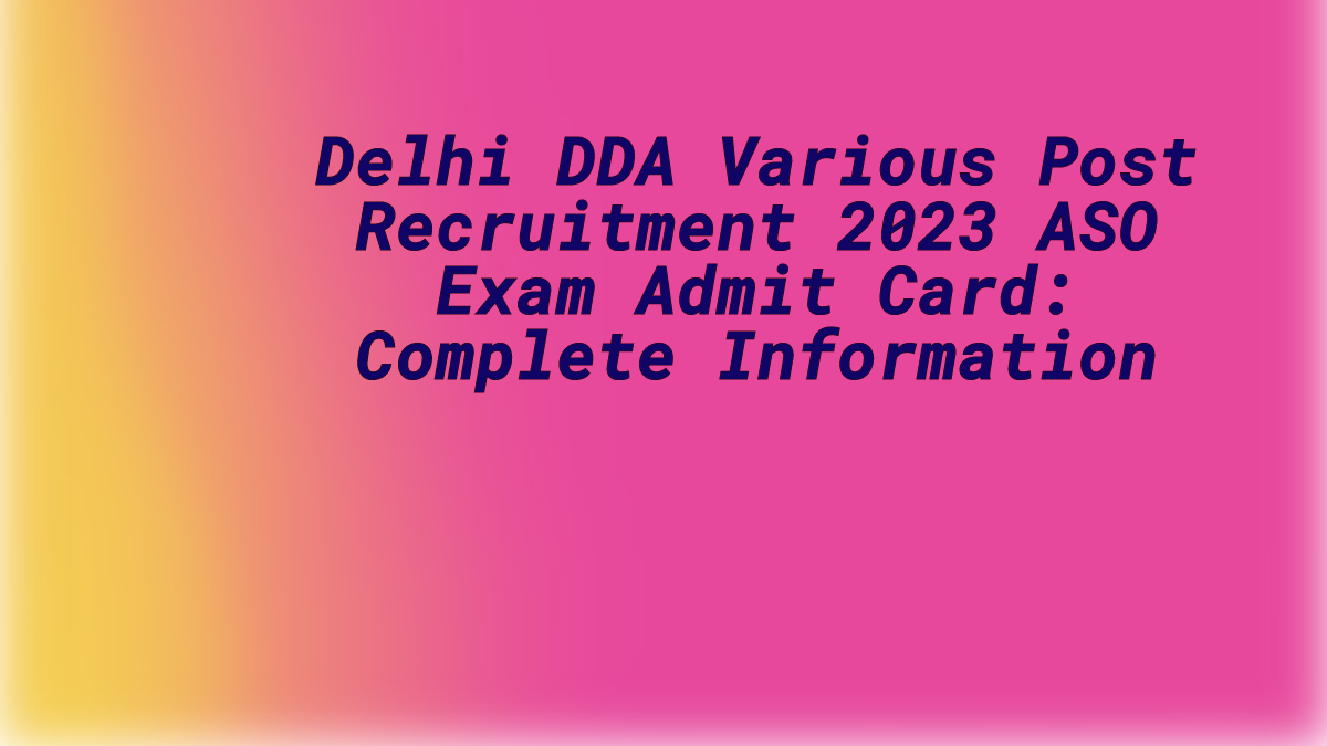 Delhi DDA Various Post Recruitment 2023 ASO Exam Admit Card: Complete Information
