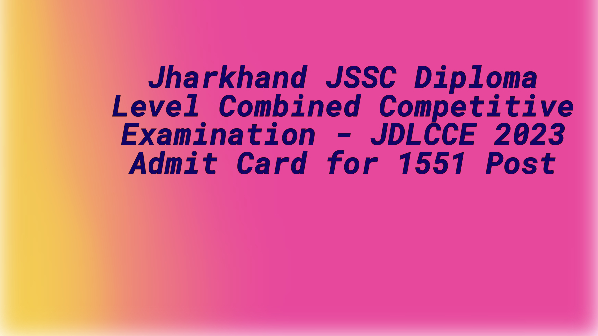 Jharkhand JSSC Diploma Level Combined Competitive Examination – JDLCCE 2023 Admit Card for 1551 Post